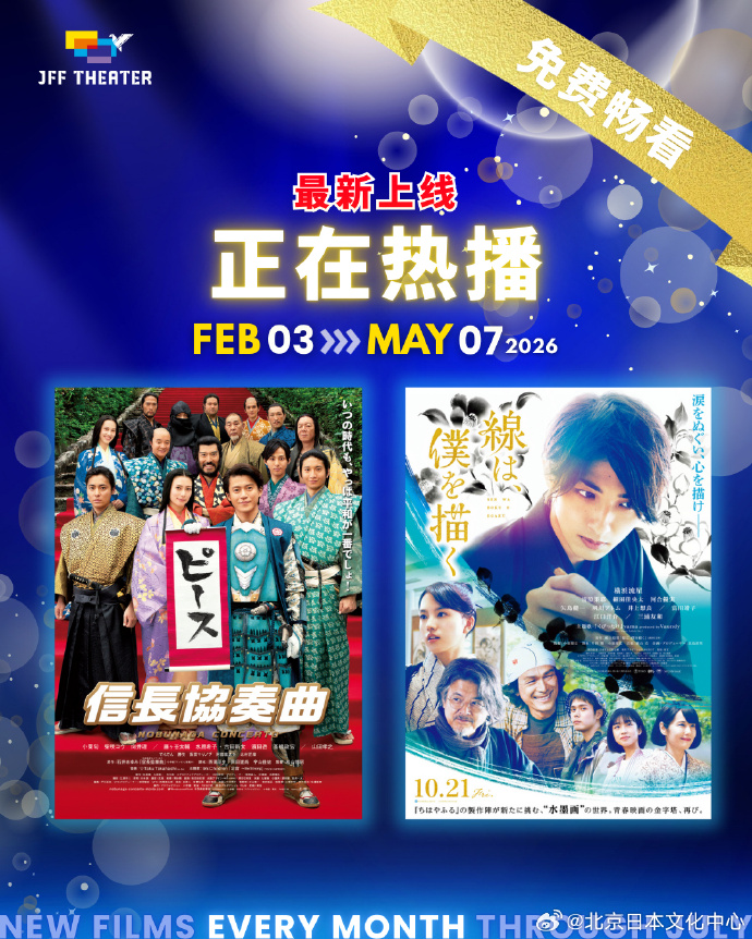 春节假期日本电影陪您过年!从2月起“JFF Theater”上线《信长协奏曲》和《线,画出的我》两部电影,聚焦人性剧情,两部作品都融入了浓浓的日本风格。假期休闲或旅途放松,非常推荐一口气追完!只需完成简单会员注册,就能免费无广告观看,请点击:
