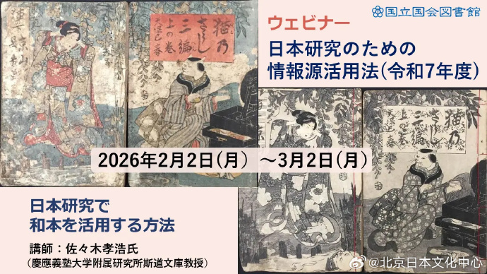 转载|日本国立国会图书馆讲座通知:日本国立国会图书馆定于2月2日至3月2日期间,在线举办题为《日本研究信息源有效使用方法》的讲座,主讲人为日本庆应义塾大学附属研究所斯道文库的佐佐木孝浩教授。讲座内容涉及日本古籍的研究方法和日本国内数字人文领域的研究等内容,欢迎从事日本研究工作或对日本研究感兴趣的朋友注意收看。关于本次讲座的详细信息,请访问日本国立国会图书馆网站。网址如下: