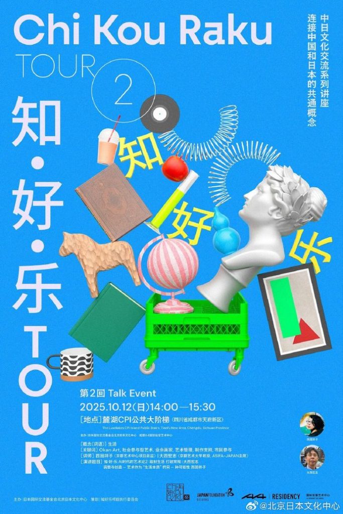 【知・好・乐 TOUR】第二站,去成都!10月12日(周日),日本国际交流基金会北京日本文化中心将在四川成都联合A4国际驻留艺术中心,共同举办中日文化交流系列讲座「知・好・乐 TOUR——连接中国和日本的共通概念」第二回“生活篇”。两位来自日本的嘉宾将为大家带来来自创作一线从业者的分享,了解以青年艺术家为代表的艺术从业者们的“生活”与 “日常”。欢迎届时在成都以及周边的小伙伴们报名免费参与~更多详情及报名方式请点击链接查看: